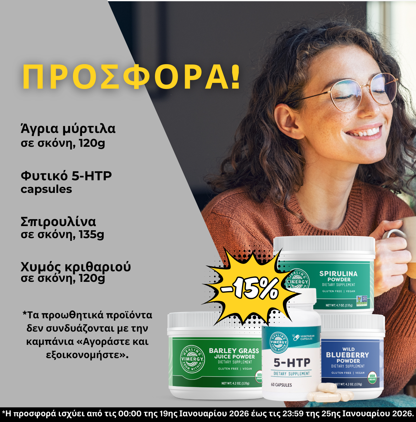 Αντενδείξεις: Μην υπερβαίνετε την ημερήσια δόση. Σε περίπτωση συστηματικής φαρμακευτικής αγωγής, εγκυμοσύνης κ.λπ., συμβουλευτείτε το γιατρό σας. Μην το χρησιμοποιείτε ως υποκατάστατο μιας κανονικής ποικίλης δίαιτας.